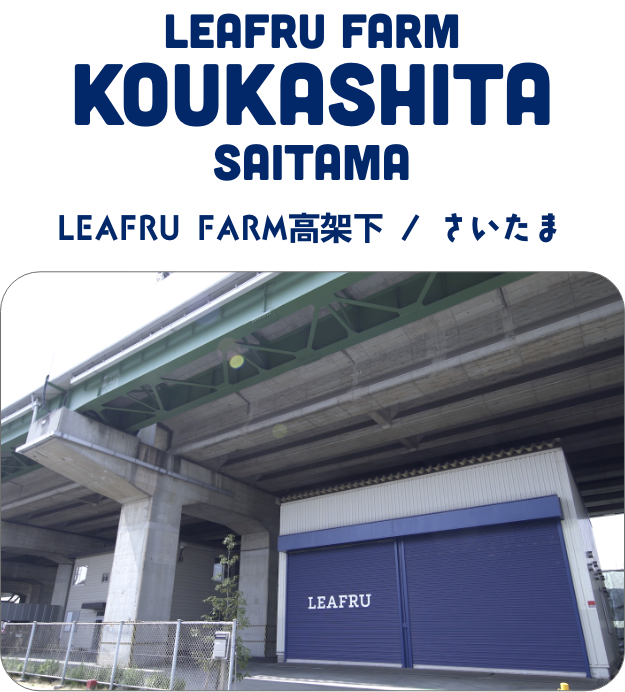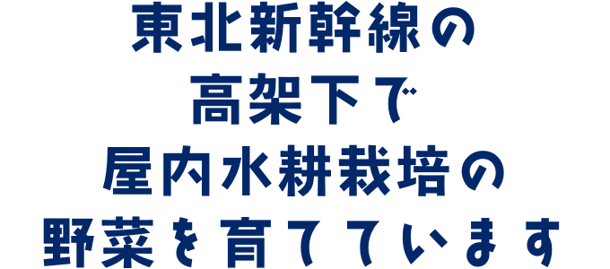 LEAFRU FARM高架下は東北新幹線の高架下で、屋内水耕栽培で野菜を育てています。日の当たらない高架下でも有効にスペースを活用しており新鮮な野菜を都心部にお届けすることができます。