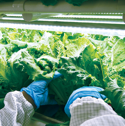 LEAFRUの野菜は、LEDによる屋内水耕栽培なので、