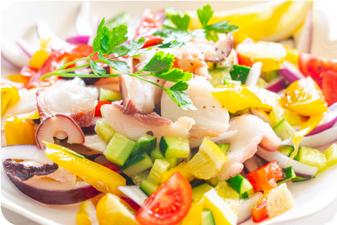 イタリアンパセリの爽やかな香りは酢やオリーブオイルなどの液体に漬け込んだマリネの香りをアップさせ、味わいを引き立てます。また、鮮やかな緑色がマリネに彩りを添えます。魚介類や肉類のマリネなどに欠かせないハーブです。